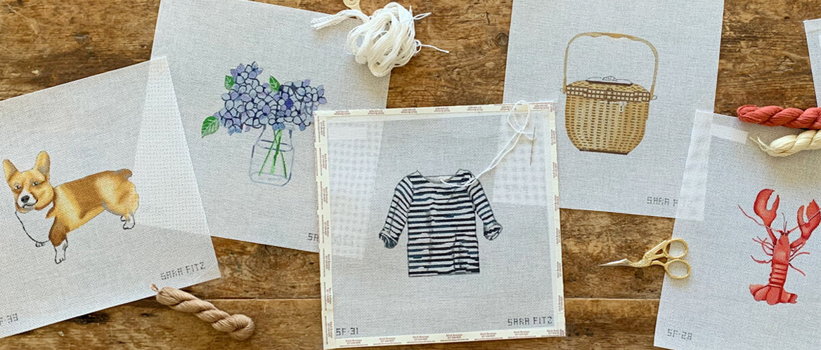 The timeless craft of needlepoint can now be enjoyed in Sara Fitz™ style! We’ve teamed up with an industry pro to offer you beautifully executed hand-painted canvases showcasing a variety of our classic illustrations! Currently, the line is being distributed to needlepoint shops throughout the U.S. for purchase.