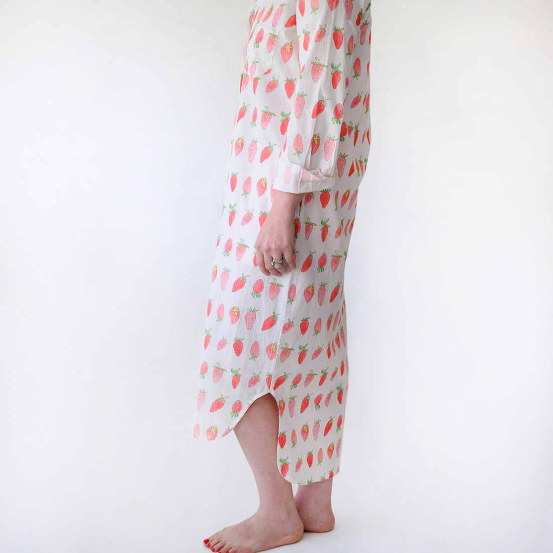 It's what we've all been waiting for, lol! With clean lines, a crisp collar, fabric covered buttons and pockets, this high-low dress will become your new summer staple!