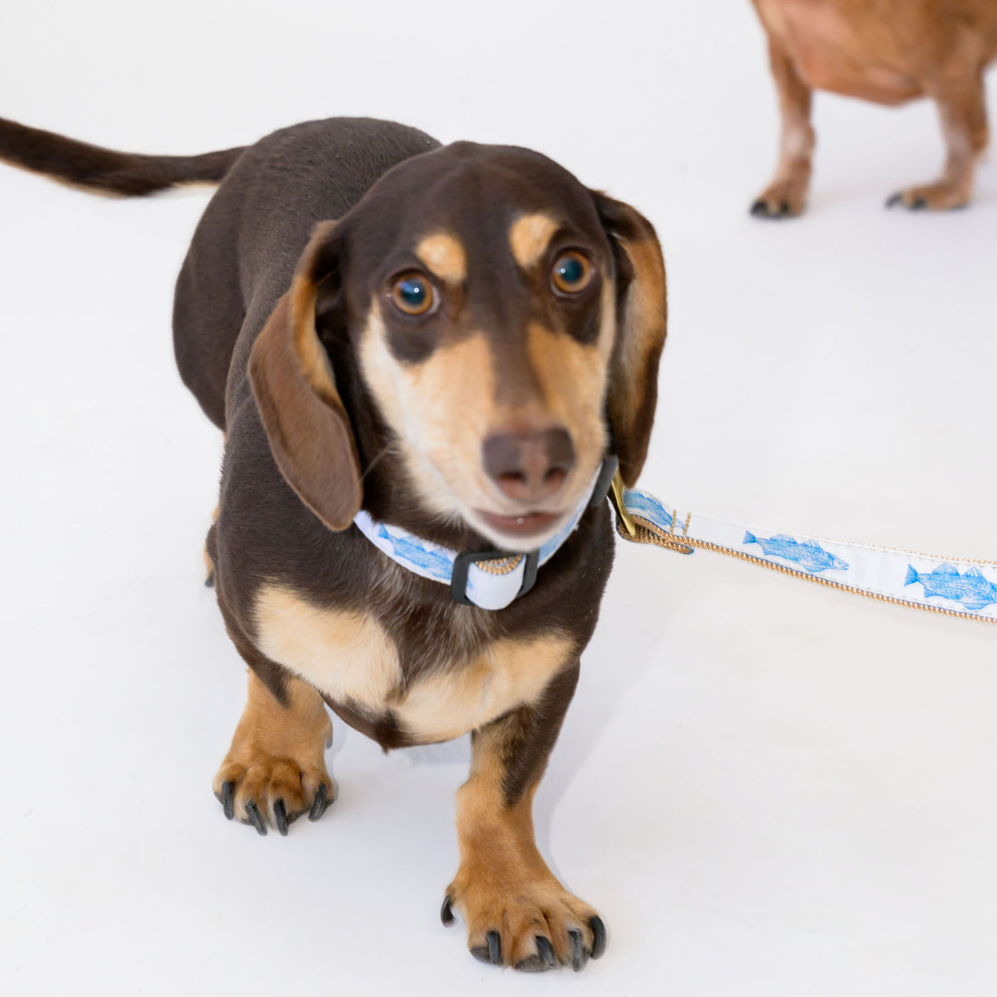Pups love to go out in style! Our new collars and leashes give them that classic Sara Fitz look that's sure to get noticed :)
