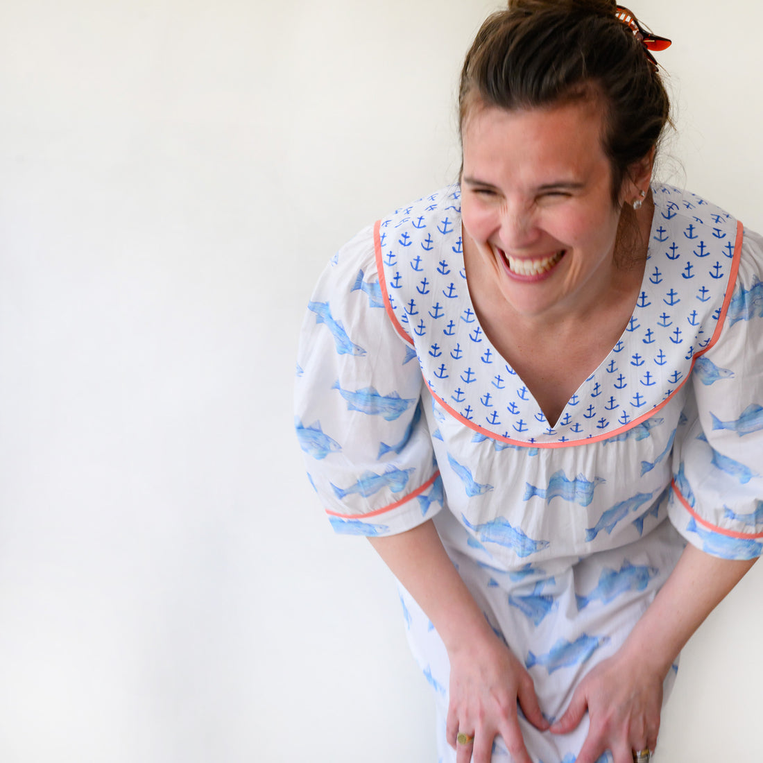 Featuring a combination of two beloved Sara Fitz prints, the most beautiful neckline, sweetest contrast piping and pockets, Sara says she's designed the dress of her dreams, lol!