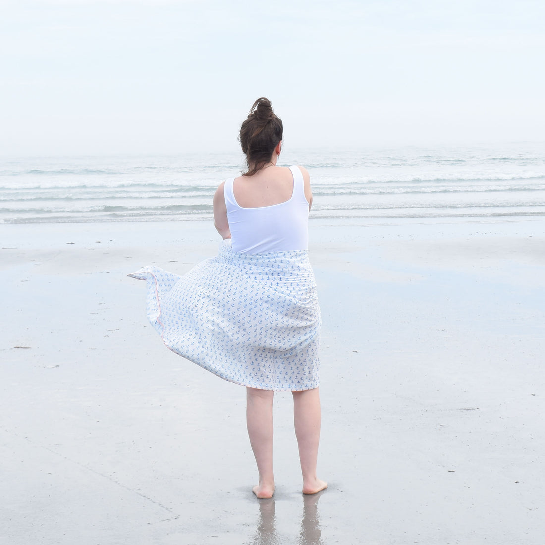 Our new lightweight sarong is the perfect cover-up for a casual beach day! With our beloved contrast piping and gorgeous craftsmanship, this wrap can we worn at full midi length or folded to hit above the knee... wrap it around your waist or at the chest... even drape it over your shoulders if it gets chilly.