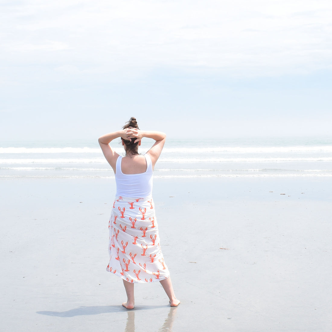 Our new lightweight sarong is the perfect cover-up for a casual beach day! With our beloved contrast piping and gorgeous craftsmanship, this wrap can we worn at full midi length or folded to hit above the knee... wrap it around your waist or at the chest... even drape it over your shoulders if it gets chilly.